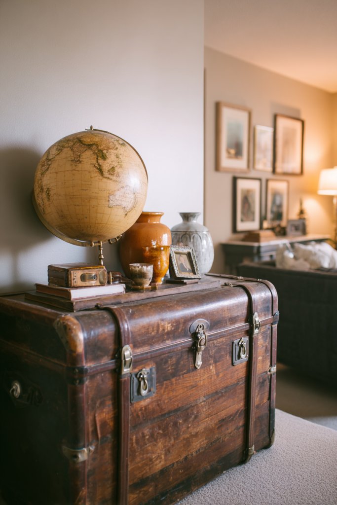 Imagine a vintage leather suitcase used as a side table or a collection of travel postcards framed on the wall. Old cameras, heirloom jewelry boxes, or antique trinkets add layers of history. These curated objects create a narrative that reflects your adventures and tastes, making your space deeply personal.