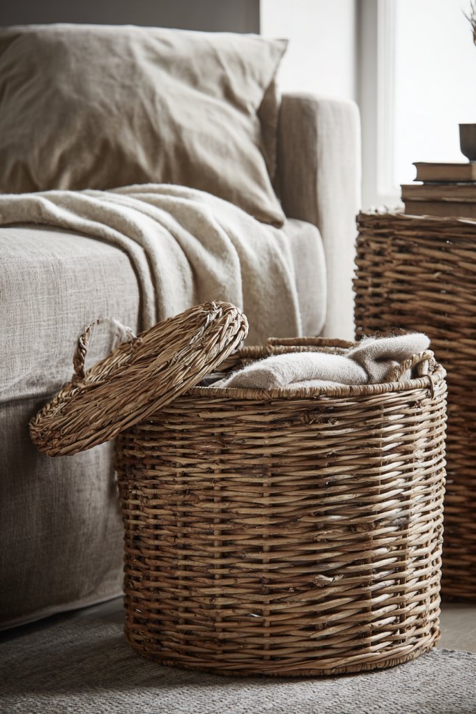 8. Incorporate Practical Storage Solutions with Stylish Baskets