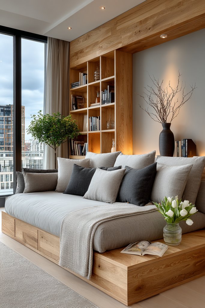 Built-in niches and recessed shelving turn your walls into smart storage hubs. They keep clutter out of sight while adding architectural interest. Once you see how much you can hide away, you’ll love the clean, organized vibe they create. Elevate your small apartment’s style and functionality with clever wall integrations.