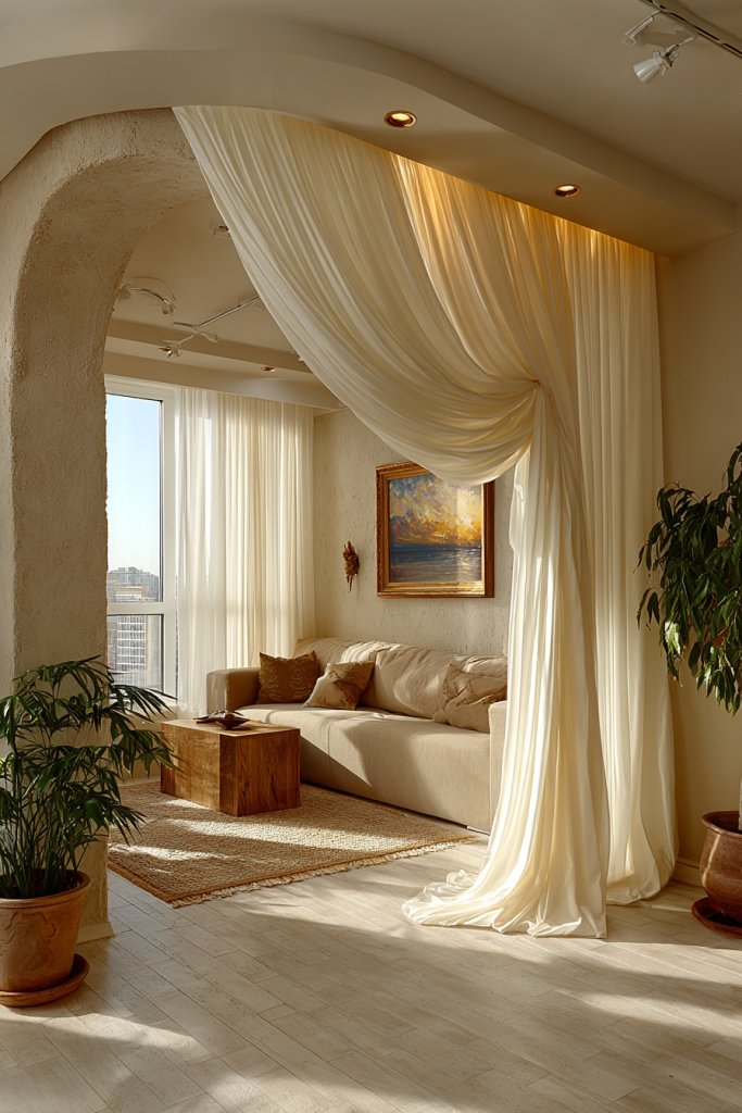 16. Hanging Curtain Dividers for Flexible Room Zones