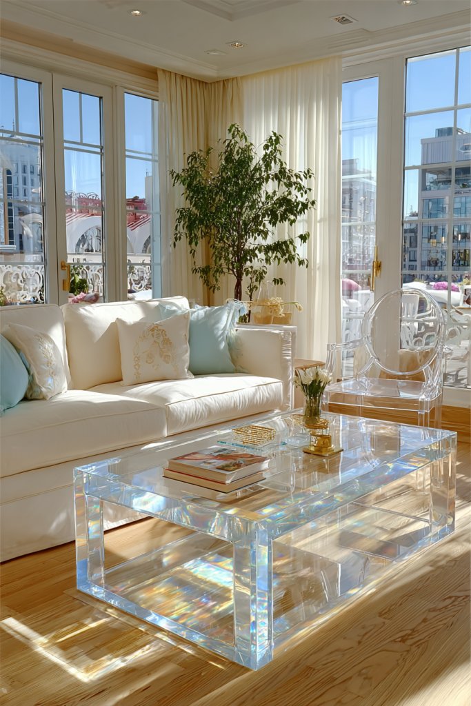 Choose transparent furniture for a modern, Scandinavian, or industrial aesthetic. Pair with soft textiles, like a plush rug or cozy cushions, to balance the sleekness with comfort. For a more eclectic look, mix transparent pieces with colorful accents such as throws or accessories. Seasonal or temporary options like acrylic stools or folding tables can be swapped out easily as your style evolves.