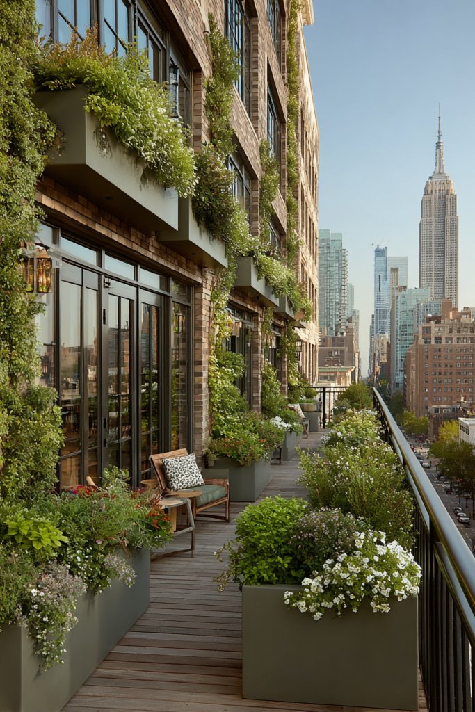 Imagine long, narrow planters attached directly to your balcony railing, filled with lush, trailing plants or flowering vines. The greenery spills over the edges, forming a living curtain that blocks views and adds a splash of color. The containers are sleek, blending seamlessly with your outdoor decor and turning an ordinary railing into a lush boundary. It’s like creating your own private oasis in the sky.