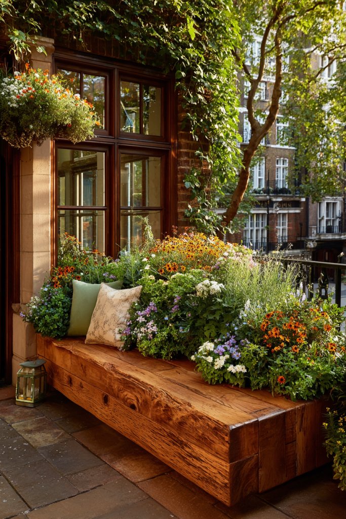 Choose materials like weatherproof wood, recycled composite, or metal for durability. Customize the size and shape to fit your space—long and narrow or short and wide. Plant a mix of flowers, herbs, or even small vegetables in the built-in planters. For seasonal updates, replace or rearrange plants to keep your garden fresh. Add cushions or throws for extra comfort.