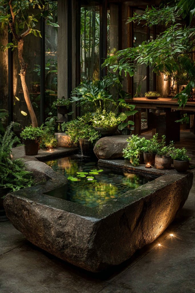 Picture a small, sleek fountain nestled among potted plants or a tiny pond with floating stones and aquatic plants. The gentle sound of flowing water relaxes your mind, while the greenery around it softens the hardscape. The reflective surface of water adds dimension and serenity, turning your small outdoor or indoor space into a calming retreat. The combination of water and plants creates a multi-sensory experience.