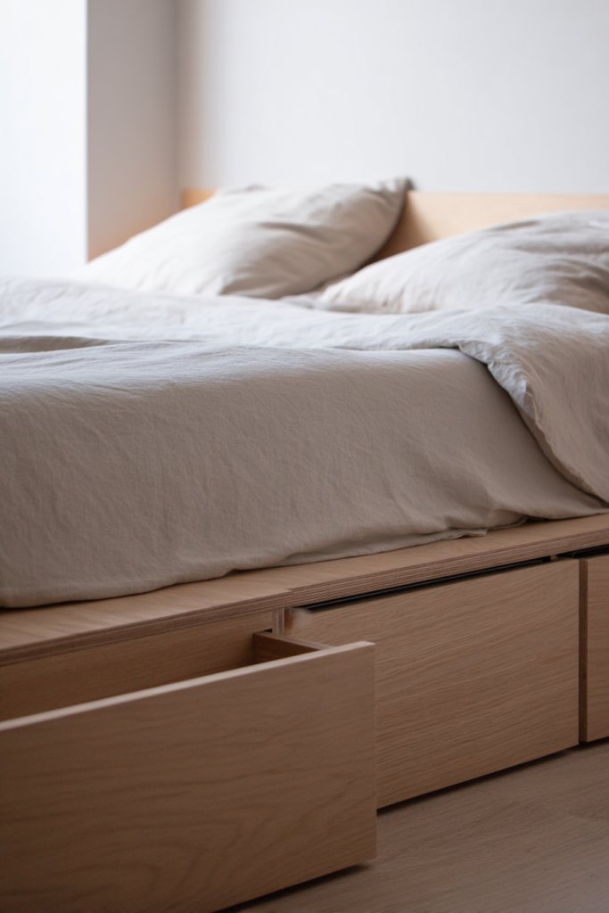 A minimalist bed frame with storage proves that simplicity can be highly functional. It transforms your space into a peaceful retreat, free from clutter. Small living doesn’t mean sacrificing style or utility.