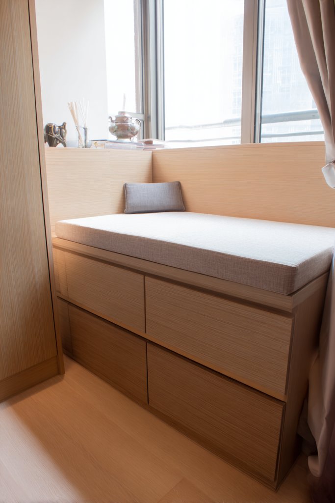 Windows are often overlooked in small apartments, yet they hold potential for so much more than just sunlight. An under-window seat creates a perfect nook for relaxing and makes excellent use of space that’s usually wasted. It’s a cozy spot and extra storage rolled into one.