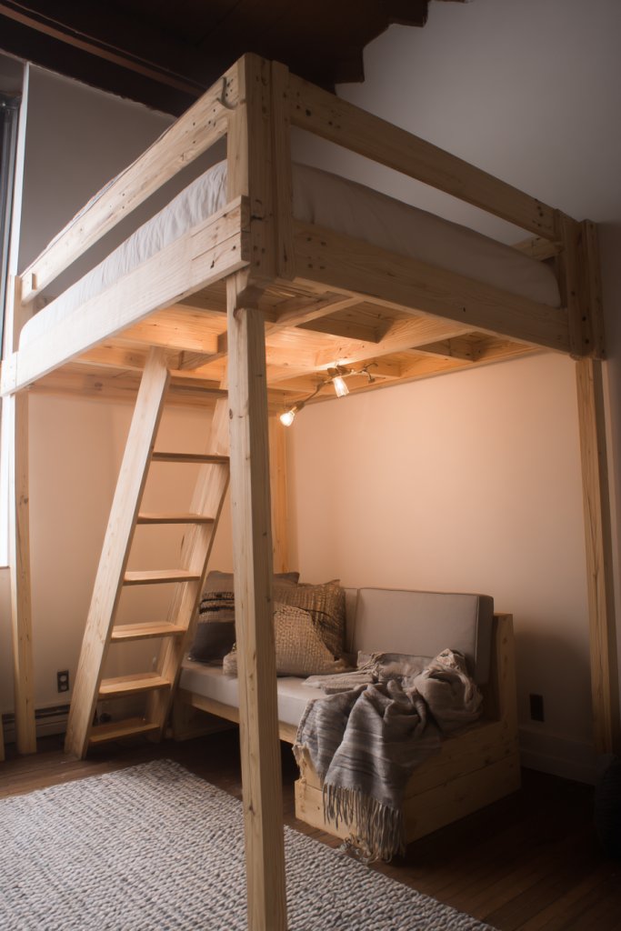 7. Lofted Bed with a Cozy Lounge underneath
