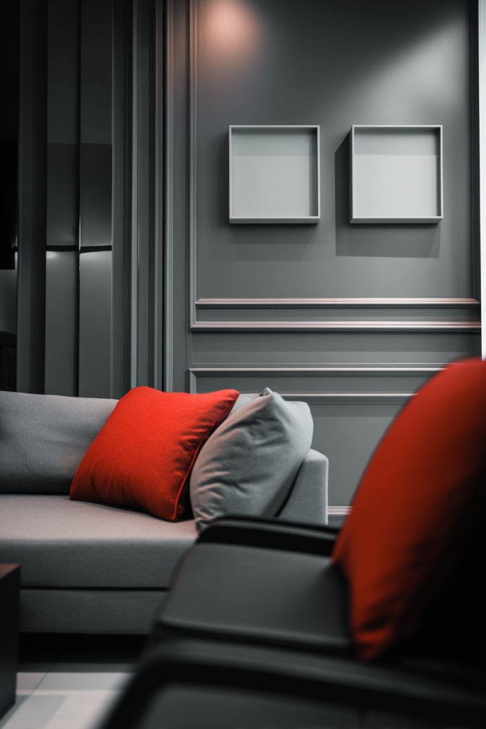 Envision a living room painted in shades of gray, accented with vibrant yellow cushions and a matching throw blanket. The neutral backdrop highlights the bold pops of color, creating a balanced aesthetic. Matte black fixtures, sleek furniture, and textured textiles complete the modern look. The monochrome palette provides a sophisticated canvas that enhances your decor’s details.