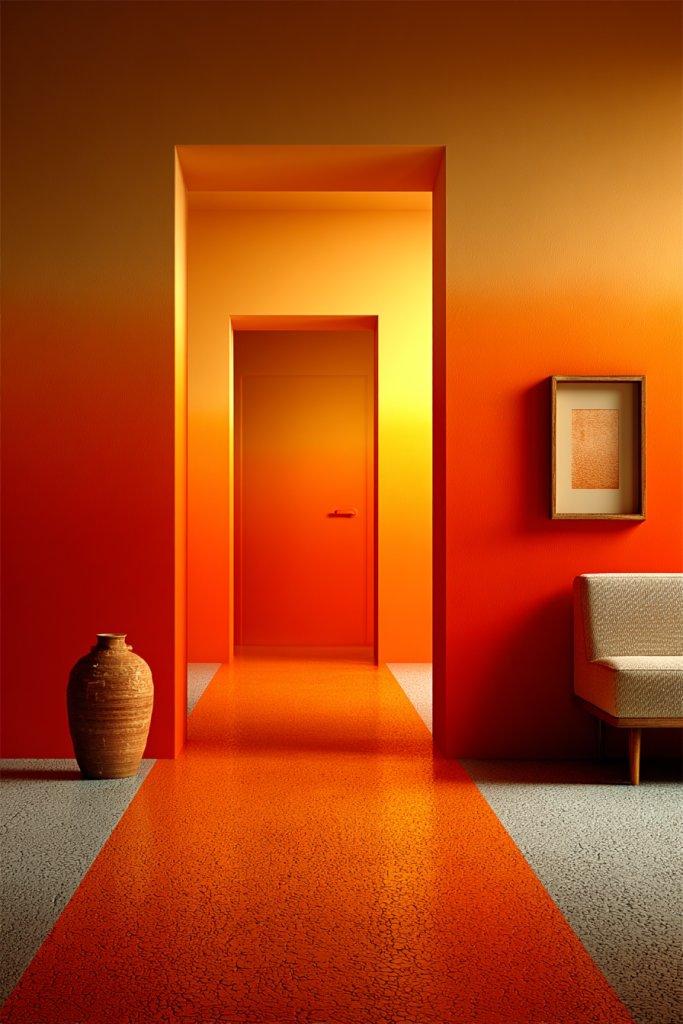 Imagine a wall blending from a soft blush pink at the top to a deep coral or plum at the bottom. The colors melt into each other, creating a velvety gradient that seems to glow with natural light. The subtle shift invites your eye to wander, making the room feel more expansive and tranquil. The velvety finish reflects light softly, giving your space a luminous quality that’s hard to beat.