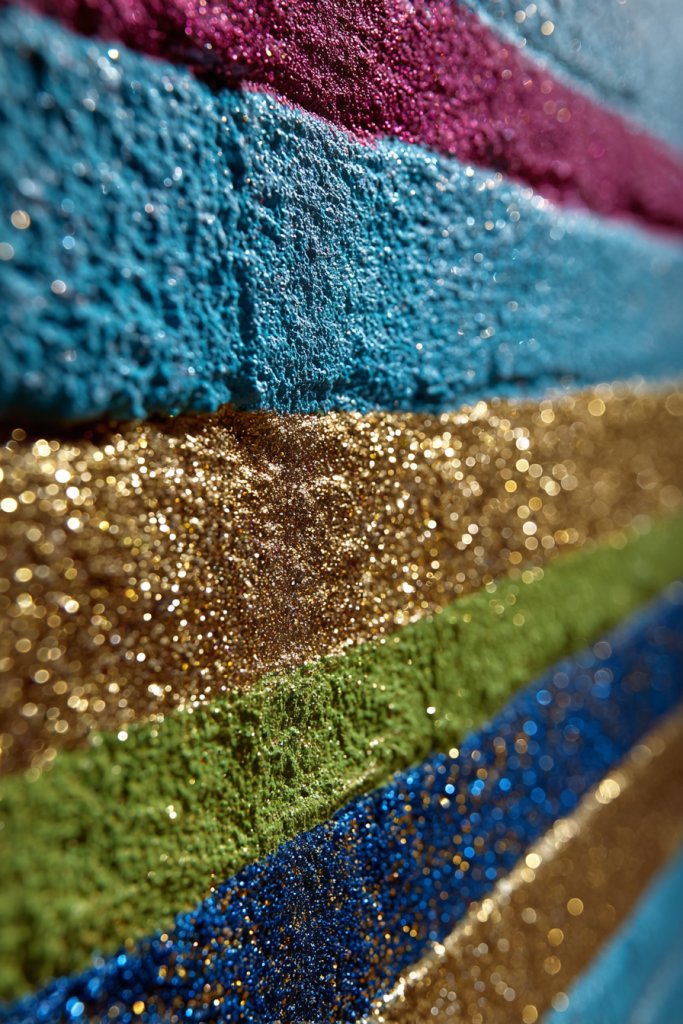 21. Bright Faux Brick Wall with Colorful Paint Technique